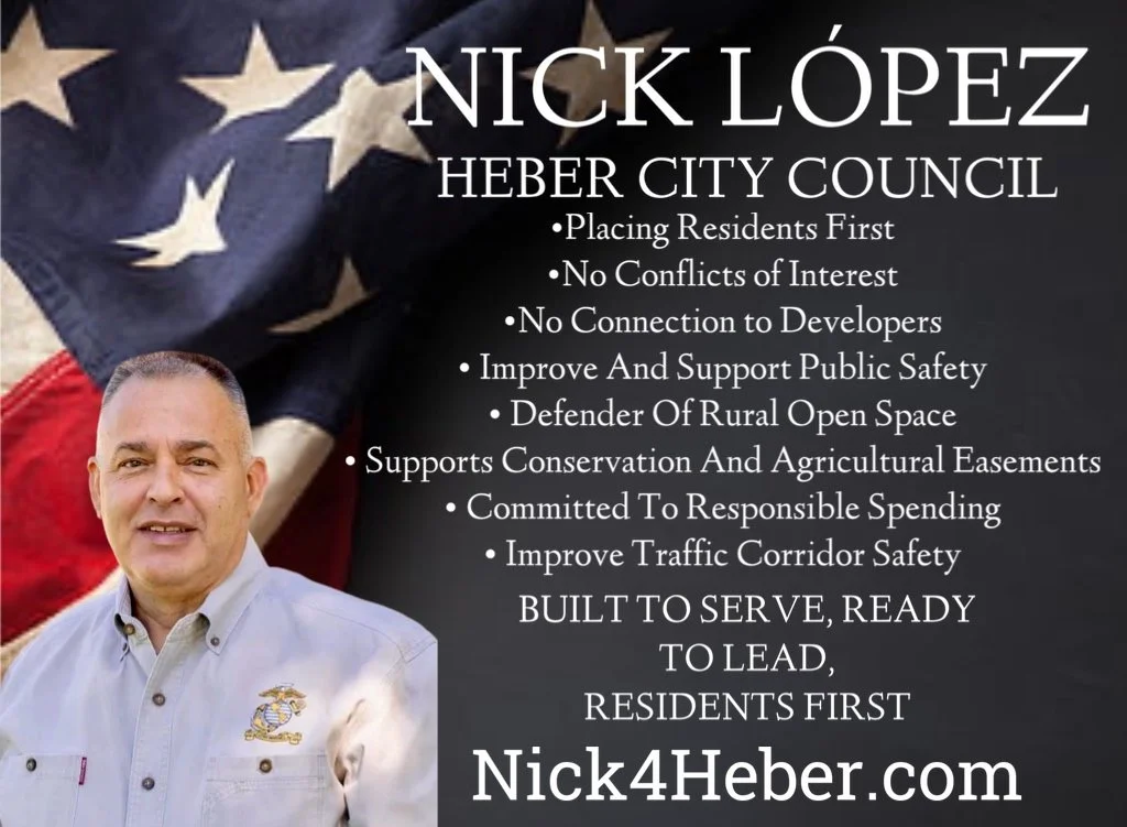 NOV 1. MEET NICK LOPEZ, HEIDI FRANCO, and YVONNE BARNEY. Fire Station #51 Community Room 251 E 1200 S Heber City. 6:00-8:00pm